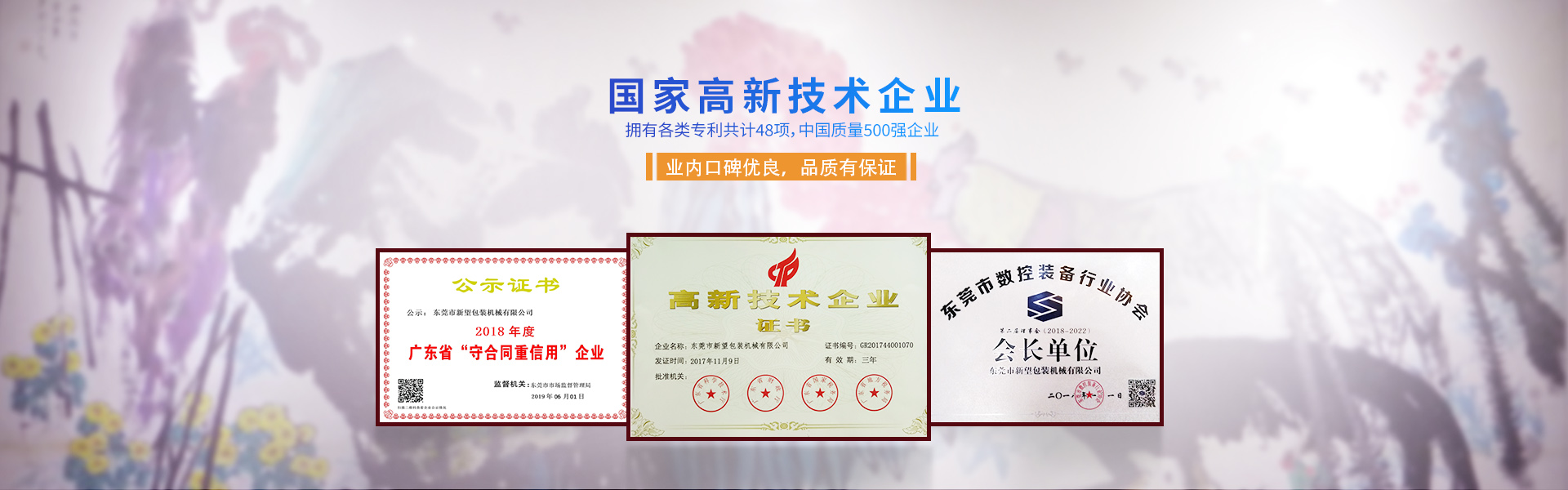 新望機械成立于1998年,位于東莞市東部工業(yè)園區(qū)的中心地帶——企石鎮(zhèn)東平村,交通方便、環(huán)境優(yōu)美舒適、視野開闊。公司注冊資本2000萬元,擁有辦公室、廠房等18,000多平方米。已通過ISO9001:2015國際質量管理體系認證,擁有國家各類專利共計58項。是東莞市企石鎮(zhèn)工商聯副會長單位、東莞市企石鎮(zhèn)文學藝術界聯合會副主席單位、東莞市環(huán)保包裝行業(yè)協會副會長單位、東莞市數控裝備行業(yè)協會第二屆會長單位、廣東省包裝技術協會常務理事單位、廣東省膠粘劑行業(yè)協會理事單位、廣東省著名商標企業(yè)、國家高新技術企業(yè)。